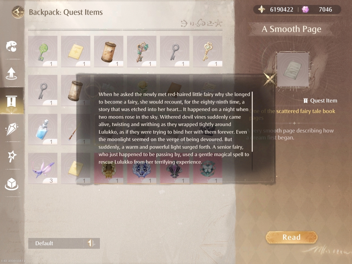 经历了一场无法用言语形容的奇妙冒险后,露露可终于回到了幻野大陆,成为了真正的仙子。她的裙摆流淌魔法的星河,红发如同燃烧的火焰,就连魔杖都在真挚的祝福中苏醒,进发出夺目的光芒。面对每一个或惊讶、或艳羡、或好奇、或质疑的声音,她总是激动地讲述起自己的经历:关于那段精彩的旅行,还有那位温暖的粉发仙子。